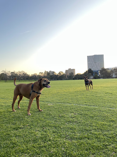 The main oval is an on-leash area for dogs but when there are no games or sports being played, most people let their dogs off. There is a smaller, semi-fenced area to the side that is off-leash and is actually pretty amazing in terms of size and variety of grass and mulch and trees (that being said, there isn’t really a back “fence” - it borders onto the city trail and the train line).