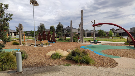 Read moreGreat themed park, especially for lovers of Dino's. There is a pair of regular swings, a 'spider web' swing, a flying fox, a climbing area, grassy play area, plenty of seats and tables, BBQ and bin.