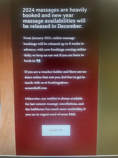 I've been trying to also book a massage but can see that must be busy! If the massage is like the Bathouse, I am not surprised! Hopefully some availability comes up soon 🤞🤞🤞