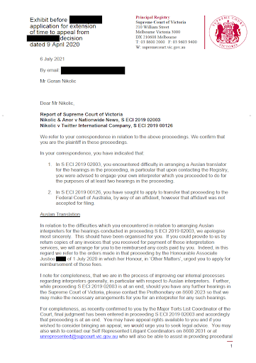 Most seriously, the Chief Justice of the Supreme Court of Victoria — once placed on notice — failed to take any action to remedy the known miscarriage of justice or address the institutional breaches of anti-discrimination law. This inaction constitutes a breach of section 28AAA of the Supreme Court Act 1986 (Vic), which requires the Chief Justice to ensure that the Court, as a public authority, acts compatibly with human rights and gives proper consideration to relevant rights in decision-making.