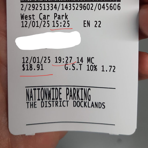There's also no couple-of-minutes grace period when you have to pay for X hours 2 mins like for example in Westfield. So we paid today for 4:02 basically thanks to standing in two ramp traffic jams, but the new level of absurdity was that their pay station couldn't process the transaction at first attempt and we were CHARGED FOR A FAILED TRANSACTION TOO. Also it apparently believes that 0.45+0.45=0.91, as shown in the photo, which is quite funny - they are trying to squeeze at least one extra cent out of you just for the hell of it, lol.