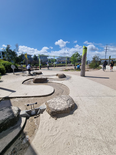 Read moreBrilliant area with lots to offer Round spider swings x2 one on its own, fully gated playground area, seating under shades, bbq and toilets outside gate by the lake, mummy and me swing, child and normal swings, waterplay, sandpit with toys climbing and ride on, zip line, 2 yeplow/green tube slides, rope climbing area, extra wide metal slide, picnic table, bins, large multi level climbing structure, drinking fountain, 3 ingrown small trampolines and smaller slide tube next to that also. BBQ areas are outside the gated playground overlooking the lake which when we went had beautiful birds including black swans with 4 babies. A short 5min walk away is a skate park areas with a full court, rock climbing wall, outdoor fitness equipment, 3 lane sprint tracks, seating, undercover area, skate ramps and a grassed oval with metal soccer goals couldn't ask for much more...