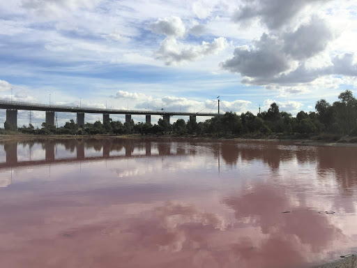 One of the most remarkable features of Westgate Park is its salt lake, which turns pink seasonally due to high salt levels, high temperatures, increased sunlight, and lack of rainfall. The reddish algae growing in the salt crust is a sight to behold, particularly during hotter weather. The park's shared paths are popular with cyclists, joggers, and walkers, and connect to some significant trail networks of Melbourne, including the 53km Bay Trail.