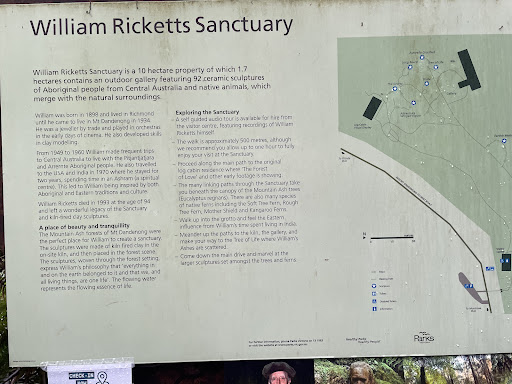 Read moreWilliam Ricketts Sanctuary Excellent place to visit. Great art work by William and very well preserved.Have you seen sanctuaries which look exactly like jungles Well, this is a very rarest sanctuary youâll ever see. The handmade carvings and art displayed by Willian Ricketts has very deep meaning. I really loved the pieces and youâll love them too. One of the perfect weekend gateway. Yes, you must carry your family along and have a worthy weekend with your loved oneâs. A beautiful walk while seeing and praising his art work. They have set up to play movie / documentary about his life, his aspirations and his work. His love for nature and his passion for art is very clear in his work. Its a great place to visit and feel refreshed. If you love art and nature then this is a place to go. There is a cafe across the road and also few other places...