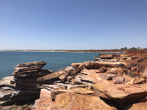 Standing at Gantheaume Point, looking out over the deep blue waters of Roebuck Bay, it is easy to see why this place is celebrated for its beauty. The rugged red cliffs, shaped by time and tide, contrast sharply with the vast Indian Ocean. For many visitors, this is simply a scenic landmark, famous for its dinosaur footprints embedded in the reef rock, a glimpse into a prehistoric past.