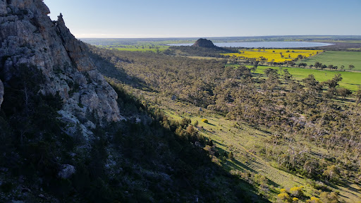 Mitre Rock has been a favorite locals destination for over 180 years. It has very easy access, which is especially important for those who are elderly, young or with disabilities. Mitre Rock also provides wonderful panoramic views of nearby Mt Arapiles and the Little Desert. For beginners, Mitre Rock is one of the regions best and most important rock-climbing areas and is especially loved by school children who can be found exploring it's many hidden gullies...