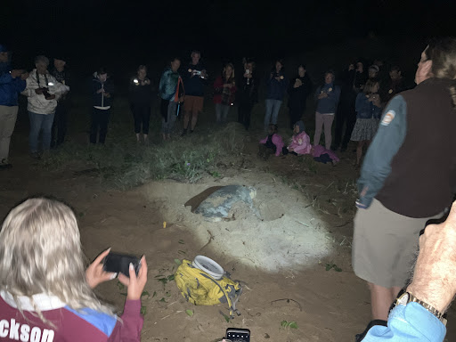 We got lucky. We started in the shed around 6pm and waited, lined up. at 6:30 the bus came and took us on a the 3 minute journey to the turtle centre where we waited 30 minutes more only to find out we were going to be put into turtle viewing groups based on the order in which we booked. So make sure you book a year out folks! As soon as we got into their nice, new, adequately large and genuinely impressive waiting area (with seating, a shop, a nifty little museum with cute baby turtle plushies in eggs, and a cafe with food to purchase too it might be added.) Group 1 got called up and left right away. The rest of us took turns in their little theatre to learn about turtles and how important it is to know how to stand still and see in the dark - neither of which come naturally to humans threatened and especially not to the entertaining 3 year olds in the front row. After several apologies from management about something they called 'turtle time', the rest of us waited till about 9pm until another turtle appeared on the beach, and the other groups went out about every 15 minutes. We left, followed our guide dutifully, stumbled along a dimly lit forest path for another 10, and wound up on a beach with several sand dune 'steps' even the guide tripped over on the first one. Gosh people looked like penguins navigating their way down the really rather small sand dune. Onto the beach, and the guide who went to check on the turtle told us to wait. It seemed the old lady (the turtle, not the guide) wasn't happy with her spot, and decided to leave rather than lay. So we got to watch this massive flippered frying pan surge her way back towards the sea. There was a majestic, surreal sense to her raw power and almost timeless form. So we stood around for a minute wondering if another turtle might arrive, when suddenly the guide yells ‘No ONE MOVE!' - Apparently someone had just noticed a baby turtle trying to crawl over her foot. This was pretty amazing, since it was the 2nd of Dec and baby turtles weren't really expected at this point. The guide scooped it up and ran around trying to find any other little baby saucepans with flippers flopping their way down towards the beach. She found three in total. We had a precious, photo worth moment where she held them out to us and let them touch our hands. they were very strong for their little size, and had little velcro-like claws on them to help them get out of the sand. They didn't seem too pleased to have their reckless bee-line towards the sea interrupted, but they did not seem stressed or panicked either. We were just thinking how cool that was, when the head ranger found the nest and dug up another 22 little guys. So we stood around thinking how lucky we where, when our nameless ranger lady tells us to hold still again (I actually think we were getting worse at it by this time) tell us that she wants to see if that dark blob on the shoreline is 'a rock or another turtle', which, it turned out, was another mother. She hauled her way up with impressive conviction. Seriously, large, fat swimming saucepans weighing over a hundred kilograms are not made for sand crawling. But it was late, and the ranger told us another group had seen nothing at all that night, so perhaps we could leave the mother to them. No complaints. We got back to the turtle center at 11pm, passed their red light doors (so baby turtles don't get distracted by the lights and head in the wrong direction) only to find that group 6 HADN'T EVEN LEFT YET! So if you book in December, prepare for a very, very late night. It's turtle time. We do not question the Turtle Time. 5 stars. You could not improve on that night in any way, unless they gave out...