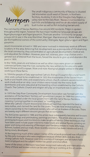 Read moreWhilst the Art Centre was not officially open on the day we went there, we were lucky to have a friend who worked in the community gain access for it. There is a small museum included in this Art Centre so is well worth a look if it is open when you go to Nauiyu. The variety of art available...