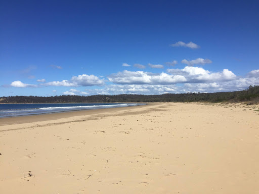 Beautiful quiet beach with gentle waves, river mouth, rocks for exploring and views across to Eden. Almost untouched and not crowded too much. Caravan parks back onto beach and Seahorse Inn looks over the beach at...
