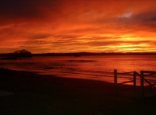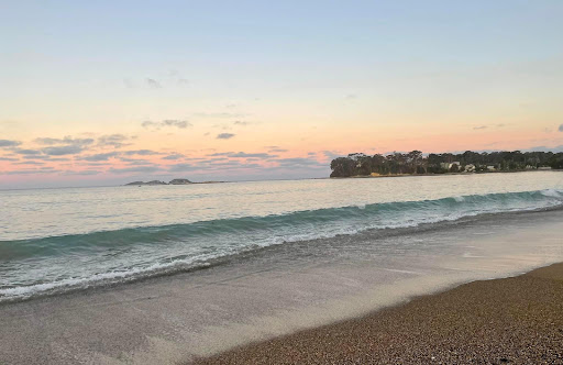 While it's a sweeping 800 metre crescent shaped beach, I describe as a part time beach only in the middle section as the high tide waters reach the rock embankment that protects the adjacent Beach Road from erosion. Sometimes when the tide is high, the waves are big, and the wind blows onshore some of the waves splash over Beach Road. At low tide though you have your beach back for...