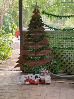 As I said it was a Christmas function - A volunteer made a Christmas tree from wood to that unnamed volunteer thank you for the lovely thought and gift for future functions. The table was Themes "Christmas in the Bush" - so fitting for where we were.