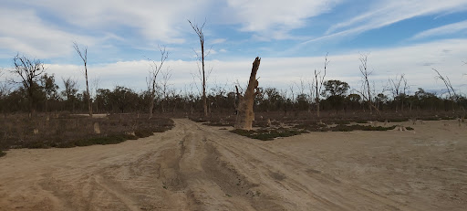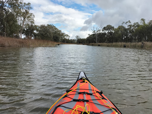 We did 2 kayaking outings here, lovely, still and peaceful, not busy at all. Firstly from the Walks Car Park, which has a canoe launch point indicated on the Parks Vic April 2021 map near the levee, BUT it doesn't exist! So we put into the water through the reeds, canoed down to where it widens out into the main lagoon, then back to get out again on the bank just a bit south of the car park. Nice paddling on a less wide part of the billabong, lots of black Swans and their cygnets. To do this end again, would park just south of the car park by rivers edge and launch from there. Second trip we did a return loop from the Psyche Bend Pump, using the new accessible canoe launcher, which worked well. A nice quiet channel to canoe down, was good for birding, might take 45mins down and back. We wanted to continue thru into the main billabong so near another larger pump building we had to portage around a weir (or you cd pull up and down another set of launchers). Main billabong was beautiful and again nice to canoe on, although a little choppy, lots of ibis and pelicans...