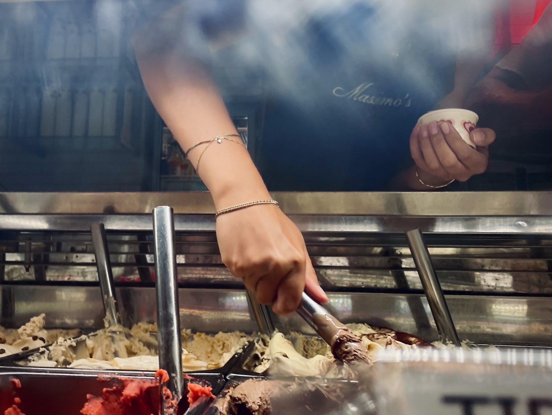 A small cup or cone will set you back $6.50 (an extra dollar if you want the dignity of a waffle cone), and even the smallest size lets you pick two flavours. But donât expect a free taste test - Massimoâs keeps the line moving. I went with chocolate truffle (dark, indulgent) and cherry swirl (bright, tangy). My daughter, ever the purist, got chocolate. And my brotherâs mango sorbet was so good we all regretted not getting it.