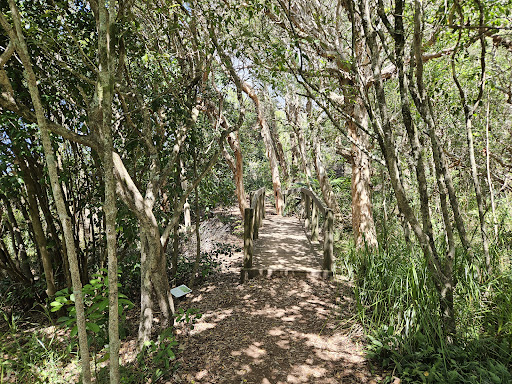 Trail that leads up to the light house. We missed the entry point to the trail - near the cafe/bathroom facilities just up from the Norah Head rockpool. We walked via the road to get to the light house. This is the sunny/hotter option.. To find the trail at the top - go through the parking lot, it's in the middle, at the back of the carpark. Nice trail, mostly shady. A few bench seats to rest and take in the view. There were signs with information about the native plants which was ...