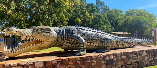 Read moreThis timber croc is huge but not as big as the legend behind it the ‘ town main street where it sits gets very hot and dry ‘ the river is walking distance up the road with a unusual rising boat mooring station . I am told this is where the real crocs hang out . When I was there I saw croc tracks but no crocs . Swimming...