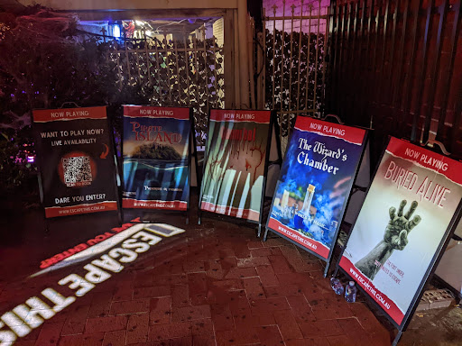 30/10/22: went during the Halloween event with friends and did the cannibal room, the second hardest room in Escape This. it was very tricky but we were a great team and managed to escape!! the free hint system was also very generous (everyone has to wave at the camera and you get assistance from either a staff member or a pre recorded dramatic audio cue) and we needed it! we couldn't figure out the final step last minute and definitely went over time by about 5min but the staff were generous enough to let us escape first which we super appreciated. the room was genuinely very spooky we all felt very on edge but in the best way possible. there was so much thought put into each aspect of the room's design, and the puzzles feel like magic, very well executed. and the decorations outside were so cool!!