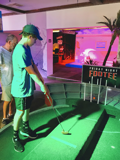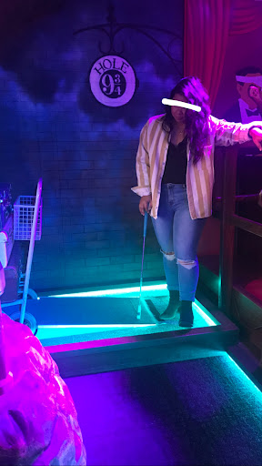 The place itself has a great atmosphere and the games are fun. All the holes are unique and the staff were quick. Everything was perfect. I'd recommend the 18 holes; you have so much fun and all the holes are creative. You can get drinks at the start, in the middle, or at the end of the course. The service is great and the fries were tasty and perfectly cooked.