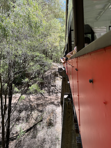 The tram trip is described as descending deep into the forrest, it actually seemed a very short distance to me. The time on the Tram is stretched out whilst the Tram Driver stops to shut the Railway Gates to cross the Road. He then stops at the bridges to allow Visitors to look for Marron or Trout in the stream. The view is far from “breath taking” as described in the advertising. Having travelled throughout Australia on many railways, I disagree that it is one of Australia’s most majestic railway lines.