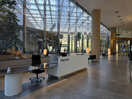 Centered in the business district of Perth, Western Australia stands a skyscraper of 51 floors that overlooks the ever growing Swan River plains we call Perth. Central Park is a masterpiece of engineering and construction with its tiered peak and outlook of windows. The view from the 36th floor is beyond belief as you can see Ascot Racecourse, Crown Casino, Optus Stadium and Matargarrup Bridge from the east side. Unfortunately the associated car park located in the basement off St Georges Terrace, is very expensive and quite a squeeze to manage in a large SUV. The building is fully secured and requires a pass key to access the lifts and floors. A conference building is separate but joined by a enclosed walkway accessible to the passing public. Cafes and specialty shops line the thorough fare and a central stage hosts Friday night drinks and performances. The foyer is 5 star hotel and furnished in modern design. The lifts for floor sections are separated and form a 5 point star in the centre of the building. The elevators are quick and quiet, but can leave you a little floaty from the quick ascend. Easy access to Hay and Murray Street Malls makes this an ideal place for work,...