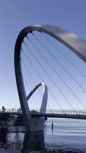 Read moreThe Elizabeth Quay Pedestrian Bridge is a spectacularly unique, dynamic and contemporary destination for tourists and Western Australians. I was here on March 11, 2018. The iconic 22-meter high cable-stayed suspension bridge is a remarkable architectural feature that spans the entrance of Elizabeth Quay inlet. As part of the recreational routes in Swan River, the 5 meters wide and 110 meters long bridge has enough clearance for pedestrians walk, run, cycle, or ride a Segway. It sits high enough for moderate sized boats to pass underneath. The bridge is a gateway to the central business district, and provide links between the promenades, the island, and the Barrack Street Jetty. This beautiful and impressive structure will give you the amazing 360 degrees view of the Swan River and Perth Central...