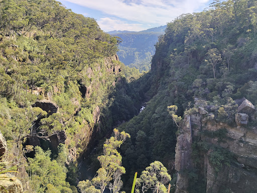 Nice short walk to the Carrington waterfall from the carpark -570m with three to four different view points/ lookouts for the waterfall and the huge valley! The car park is small and can get filled up quickly so try going on a non public holiday or just wait and people do leave quickly. There are toilets for a break. The drive from Robertson might be a bit windy but from Mittagong it is much easier to drive, either way a nice waterfall and walk into track to go when in...