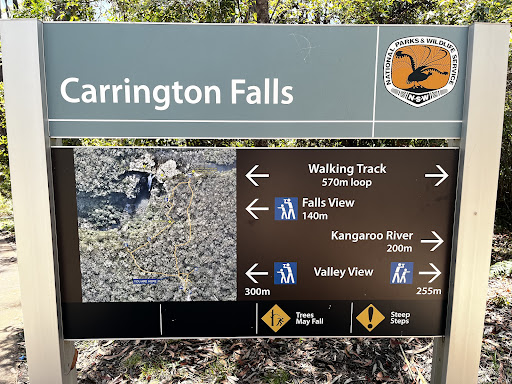 The Carrington Falls picnic area is located within the Carrington Falls precinct of Budderoo National Park. To reach it: • Travel along Jamberoo Mountain Road from either Robertson or Jamberoo. • Turn onto Cloonty Road at the Carrington Falls sign and continue for approximately 2 km. • Turn right into the Carrington Falls picnic area.