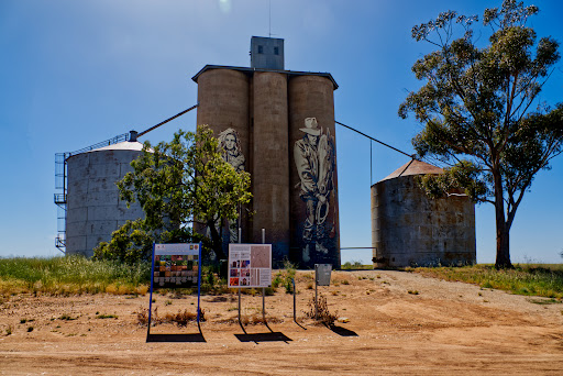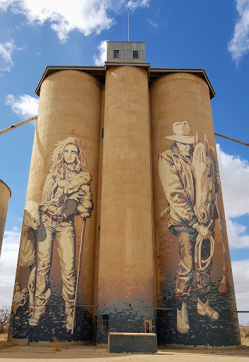 Read moreThe GrainCorp Silos at Rosebery artwork was completed in late 2017, and is part of the 200 kilometre silo art trail. The Melbourne based artist who painted them is called Kaff-eine, wanted to show the hardships of...