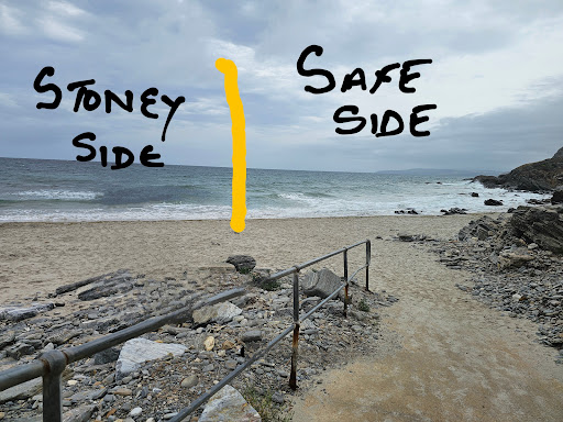 As you walk down the Ramp and into the water, the left side (Towards the Jetty) is very Stoney inside. There is a chance that the feet or toes may get stuck in between the rocks inside the water and the tide may push you to fall. This will end up causing injury to your feet. So walk on the right side (towards the hill) where the sand has no rocks. Please refer to the images and like and share for...
