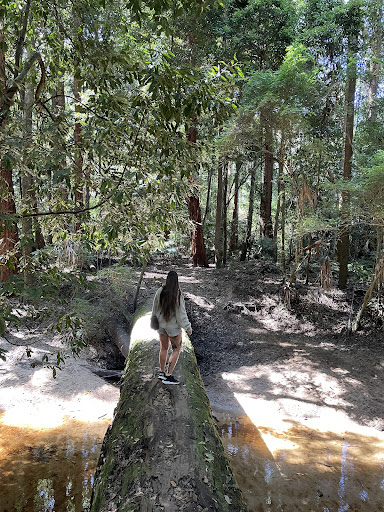 The lower track takes you through the arboretum and there is a beautiful spot where you can walk across a massive tree to cross the creek. it’s not necessary to cross it but it’s a beautiful spot to stop for a picnic and a play.