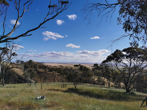 Pleasant walk with nice views out to the west, I guess there are orchids in spring and maybe water in winter but hey, this is South Australia so let's not get too presumptive! It was interesting to notice how many trees had been logged a loooong time ago but really, at the end of the day, it's spur and gully terrain with a mix of Blue Gum and other species. Some nice young Yakka which were flowering however the bees visiting were not native. So yeah.... You can get a decent loop walk...