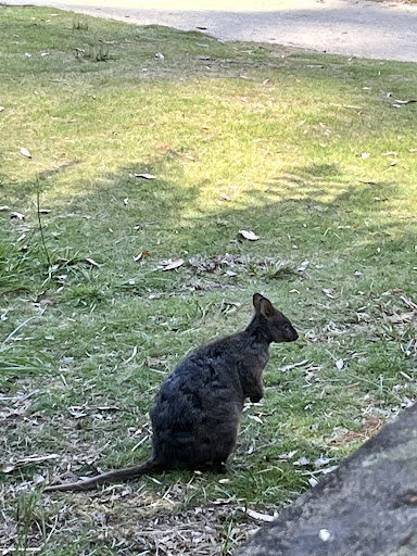 I should state first off that the “easy” walk to the best spots for platypus spotting might mean different things to different people. My more physically able partner was up for it and he is nudging 70. (Grumble grumble I’m not 69 yet … well in three days then.). But for those of us with a medical condition the slope was a bit much. So yes, easy for 99% of the population but just be aware that if you have limitations you should perhaps not rock up assuming you can do it. This being said, I decided to park myself in a spot and stay. If I couldn’t get to the best spot … I would give it my best shot. Word of advice to the custodians at this point. There are lots of picnic tables along the path. But they are set back from the water. Maybe some bench seats for those of us in for the long haul could just sit and be patient and watch the water. My patience - and wobbly legs - were rewarded. I DID see a platypus, less than 100m from the carpark. I tried to signal my other half quietly to call him over. But the movement was enough to send our ornithorhynchus off in a flurry of silt. I am definitely the tortoise out of our tortoise and hare partnership. But I won the race today! We also had a visit from a sweet little visitor too, and he seemed to quite like being talked to. I am about to head back to the car and the motel … but wait … there are some...