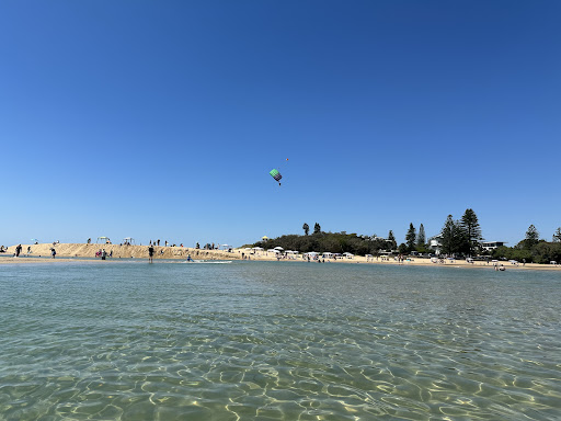 Be careful to supervise kids when the tide is rushing out to sea, as they could easily lose footing and be swept out. The water can get deep very suddenly with the changing sand underneath. Good fun when the tide is going out, floating from up alongside the black coffee rocks adjacent to the conservation park, down to the opening of the lake where the ocean begins. Absolutely ideal place to bring babies and young kids. There is a bit of shade over near the buildings and car park. Parking can be a challenge in busy times. The public toilets are nearby and there is a playground to suit young kids. A lovely walkway goes almost all the way to the bridge. It's a lovely place to see native flora...