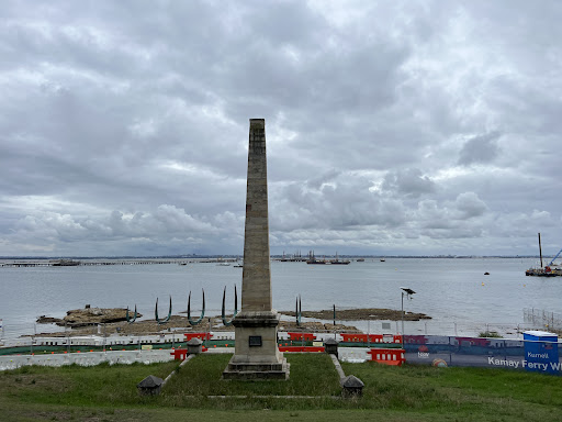 We left visiting the ‘landing monument’ until last only to find the shoreline path blocked by works access for new a loading jetty being built. No warning signage anywhere up at the visitor centre, just a notice about 100m before the dead end on the shoreline path.