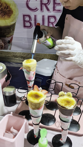 Really busy street filled with delicious street food, though cannot compare to the vibes of Burwood night markets or Friday night markets in the city. We tried a lot of food… pan fried mini pork buns were superb, Thai desert was awesome for $10 for 6, Whiskers gelato was a standout and I could probably say best gelato I’ve ever had (chain stores are so boring in comparison), Korean sausage on a stick with batter and potato was tasty, however batter is way too thick in my opinion, strawberry candied fruit was amazing, stir fried radish cake dipped in chilli was yummy, can never go wrong with freshly grilled lamb skewers with cumin, giant BBQ squid on a skewer was the best savoury dish of the night, gluten salad wrapped in a roll and Asian dressing was super light, fresh and refreshing. There was one stall that sold cooked cold seafood in pre-marinated dressing like a salad almost (they had shellfish of all sorts like “whelk”) - this was the only stall that I would not recommend - big thumbs down with price for value and shellfish had a bad aftertaste and if I was rating this stall by itself I would give 1 star. Apart from this particular stall, everything else was fantastic. I tried taking photos of everything but too many people and too...