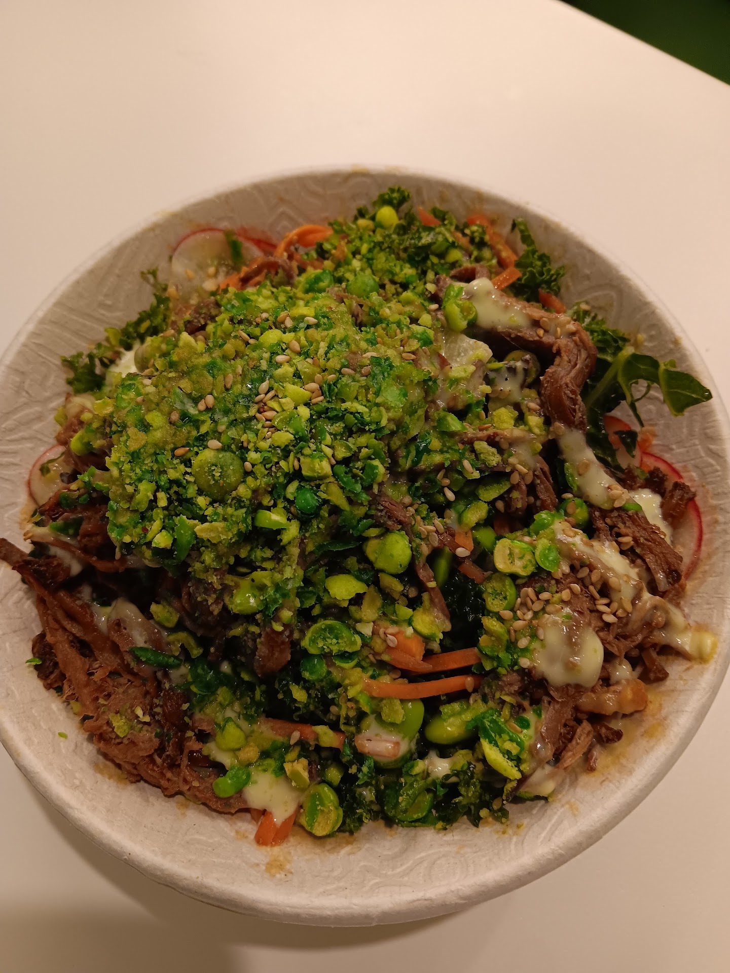 This caused a lot of confusion, as there are many customisation options (bases, proteins, toppings), and it was impossible to tell which bowl belonged to whom. Staff had to open every bowl and guess what was inside, a process that delayed pickup by another 30 minutes. Even after labeling, many of the bowls were mixed up.