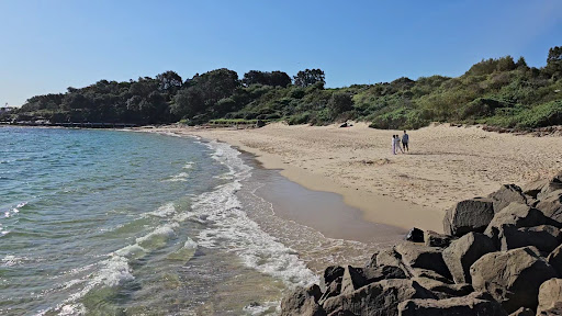 A very lovely beach for a nice relaxation :) what you will find is that the water is super clear (on a sunny day), with gentle waves. This beach is also suited to families with young children (no lifeguard, however common sense applies). There is ample parking (free parking) which connects to the parkland and the beach on the other side. Be mindful of the evening as most carparks closet to the beach are mostly full ,(plan ahead). There is also a cafe /restaurant on the beach which Is great if you are feeling peckish. The main entry point features a concrete ramp (large enough for beach trolley or prams / wheelchairs) along with 2 open air showers on the side. There is also a playground area for young children near the main entry. There is plenty of space around considering the size of the beach, however be mindful of the tide, it will come in quick in the afternoon. If the wind annoys you feel free to head to the rocks located on the right side of the beach (use as a shelter) No dogs allowed unfortunately, Ohh and if you have a beach trolley, plan to move ahead before the tide gets in, it's all helps with the moving of stuff much easier! (Found out the hard way lol). Will recommend this...