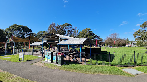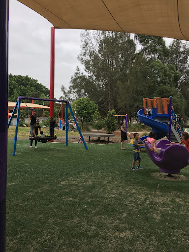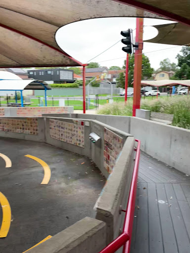 Read moreThis fenced playground has loads of different things to do, as well as a cafe and toilets. Sandpits, climbing rope pyramid, slides, swings, spinners, scooter/trike path with road signs and 'shop'. A variety of music toys: jumping accordion tyres, stepping note buttons, and two xylophones. There's also a BookExchange box and reading chairs. There's also a bubbler, BBQs and tables under a metal structure, and assorted picnic benches and tables, as well as plenty of shade cloth and tree shade. The flying fox and powered carousel work maybe half the time but are big attractions when they do. My five and two year olds can spend hours here. For extra fun, bring a kite - there is usually a bit of wind off the bay, and Timbrell Park is a great place to fly kites (when it's not full of weekend...