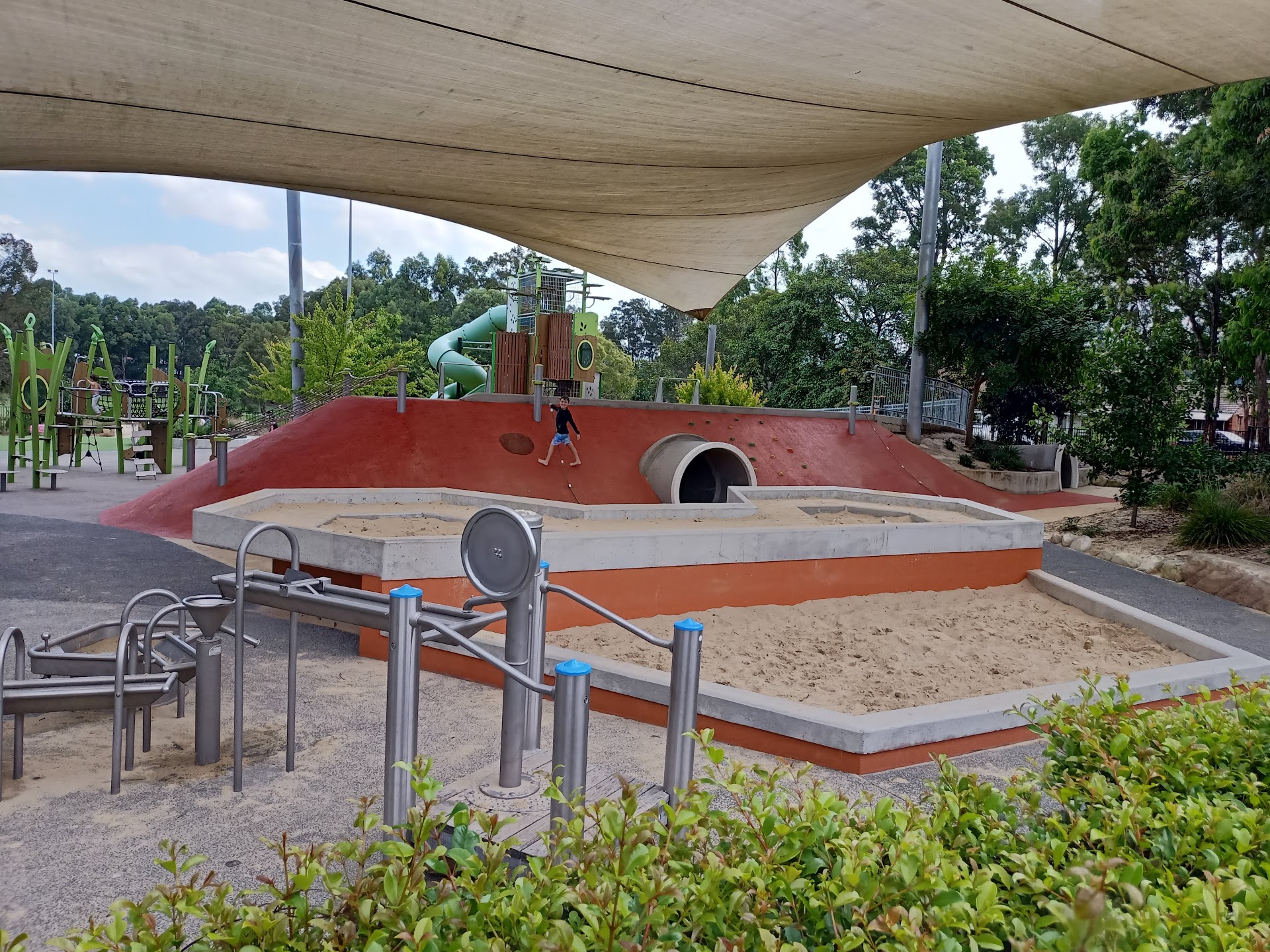 Excellent fenced and gated playground for kids of all ages and abilities. Water playground in the warmer months, shade over the main playground (although not over the area for the smaller kids). Soft fall ground and play mound structure (some fall hazards but I've never seen a fall happen). Large sand play area also, so may be best to bring a change of clothes if kids will be playing in sand and water areas! Seating with tables is limited but shaded, plenty of places to sit without tables. Vision across the whole playground is limited unless you're at a height or have multiple adults. Parking is easy enough on a weekday (not sure about weekend). Something for kids from walking age to pre-teen (or older if still interested in playing), but best and easiest experience for parents with kids 3-10 years old). New toilet block next to playground. Very easy to spend an...