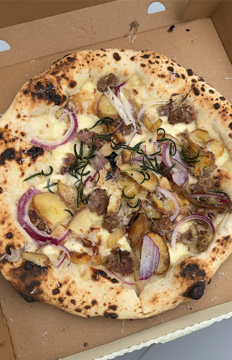 $23 - Salamino - San marzano, spicy beef salami, fior di latte, calabrian chilli + basil $27 - Patate e Salsiccia - Confit garlic cream, fior di latte, potato, lamb sausage, red onion, fried rosemary + manchego