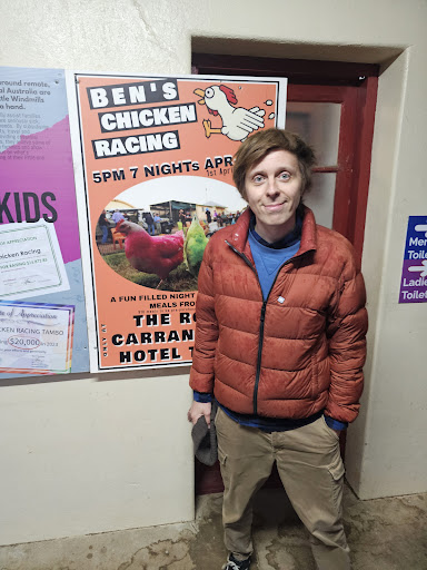Read moreThis place is a hoot. Located at The Royal Cangararra Hotel in Tambo Queensland. Ben's the publican and owner, buying it about 7 years ago. He was keen to promote the town and scratched his head for ideas. He came up with a plan to race chickens and to raise desperately needed money for local welfare organisations. 6 years later, the place is packed every night with travelling tourists as he hilariously comperes and runs the race. The crowd bids for the chickens spending lots of money to achieve the fame of their chicken winning. Highly recommend visiting this place whilst on you travel through the amazing Queensland...