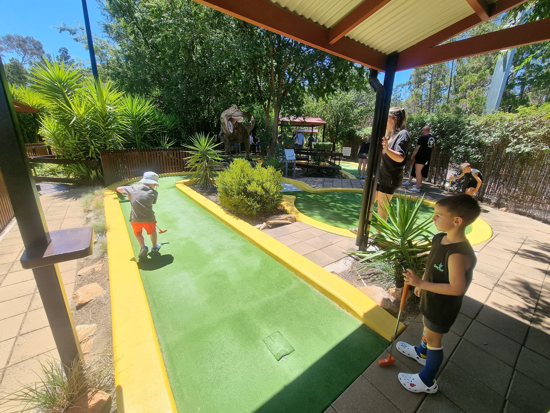 unfortunately it is out at the Barossa so a bit of a drive depending on where you live (but worth it tbh) mini golf is outdoors so not great if it's raining! But you can at least still bowl! if you (or your kids) are triggered by loud noises, they may find the Dino sound effects a bit confronting (but they only play when the button is pressed, they aren't automatic)