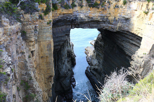 This is one of natural attractions that you can view near the Tasman Arch carpark in the Eaglehawk Neck area. After viewing Tasman Arch just next to the carpark, you can take a short walk to Devil's Kitchen, another remarkable natural land formation caused by rough seas eroding the sea cliffs and carving out sea caves with roofs that collapses many years ago, forming narrow and dramatic cliff sides which you can view from up top.