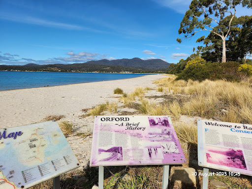 Great spot for a walk along the beach. There is a bird nesting area towards the mouth of the Prosser River making the beach not suitable for dogs during the spring and summer months. Panoramic views of Maria Island. There are barbecue areas available and public toilets… a nice spot to stop on your way...