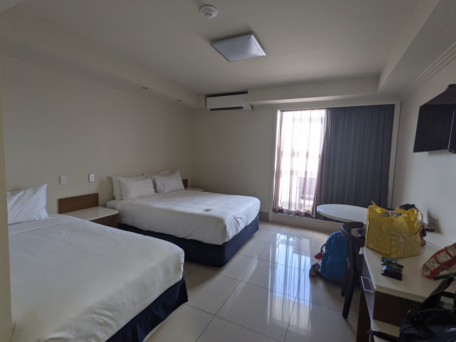 Quite frankly I felt ripped off. We booked a Delux room, which is their standard room. We paid $300 a night to be placed in a room where the wardrobe was missing it's door. You shouldn't be placing guests in rooms when they are faulty. The rest of the room was just so horribly clinical. There were just tiles on the floor, nothing on the walls, a desk and a small table with 2 seats. The tv was tiny and you could barely see it from bed. In no way did it look like the picture on their website. And why 2 desk\table, where is a soft chair to just sit in? We complained about the wardrobe door and they moved us. The next room actually looked like the pictures advertised but it was so tired, just soooo old! We accepted the room but then didn't get any sleep as the air con had a constant high pitch ringing. We should have complained again but what was the point. They would just place us in another horrible room and the first move was already long and hard enough. Apart from the ringing air con, the lights had thick dust all over them, water damage above the door. The bed was meh. The bathroom was fairly awful, it had no extraction fan so it was a sauna when you got out of the showerbath (Goodluck if you don't have good balance). One of the towels ripped when I was drying myself. It did have a much bigger tv which was new, so that was positive. The pool towels they give you in the room are old and you will get fined if it's not taken back to the room. There is also no complimentary water or even bathrobes. It sounds picky, but many hotels in this price point all do this as standard. The pool is it's only redeeming feature but the sunloungers are all ripped and stained. They did up the infinity pool which is open to the public but they forgot to upgrade the hotel guest only lagoon pool. The swim up bar is kinda fun but don't go for the cocktails, they are really overpriced and just plain terrible ($20-22). The mango daiquiri has some cheap mango rum which has been pre-made and then Ice is just added to the blender. So you never see the alcohol go in and in what ratio. Just buy beer, then you know exactly what you get. There are actually some really good cocktail Bars in the CBD with prices around $18 and $15 for happy hour. Go and explore them.