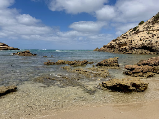 This is a fine example of the numerous pretty little bays that dot the back beaches of the Mornington Peninsula, with little being the operative word. The car park, in particular, is tiny, holding perhaps twenty-five vehicles if they pack in tight. Which means it is hardly ever jammed busy on the beach, because few would walk the road to reach it if they couldn't find a park.