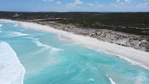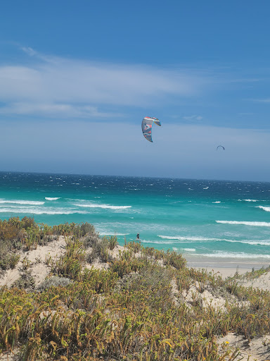 OMG! An endless white sand beach with a constant wind and break that surfers appreciate. There were six kite surfers and two board surfers at last count today. Viewing areas set up at the different car parks. Lots of parking available along the drive. Be prepared for the lack of toilets...