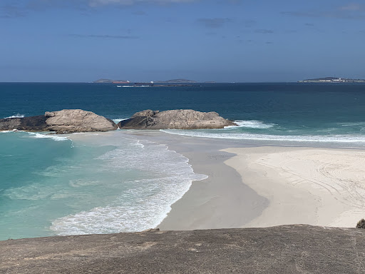 Beautiful double beach (sheltered on one side, bit of chop on the other). Hard sand to drive on. Big Wylie rock to climb if you so choose...