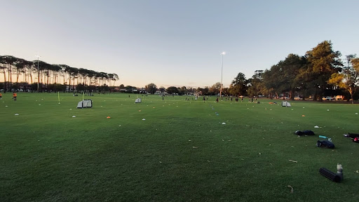 A great park that is primarily used as a soccer field in the winter season. The park also caters for cricket players with a cricket pitch in the centre of the park, and cricket nets off to the side. There is also football goal posts in place all year round as well as a playground at one end of the park for the kids with benches to sit on at spots around the outside perimeter of the park. Although the park lacks lighting at night for sports players wishing to use the park during the week for training, change rooms and a functioning drinking fountain are present. The park also has a small car park on one side and off-street parking at another. Bins and doggy bags are all around the outside of the oval making it perfect to take your dog for a walk on the luscious green grass. Except for the lack of night time lighting, this is a great park all round.