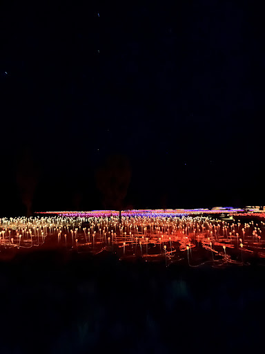 And then there was the setting—truly unlike anywhere else in the world. Dining under the stars, with the Field of Light art installation glowing softly in the distance, created an atmosphere that felt surreal. The desert sky put on a show of its own, with stars scattered so brightly overhead it felt as though you could reach out and touch them. The peaceful stillness of the outback, combined with the shimmering light and soft conversations around the tables, made for an atmosphere that was both intimate and awe-inspiring.