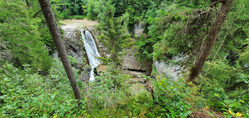 This is really hidden gem - impressive waterfall, great views around, 5 min walk from the parking. The place is really close to the main road although is not easy to find - search the maps before to be prepared. Parking is not really a parking, but a tiny place for about 2-3 cars. And still, the place is worth visiting not only to see the waterfall, but also for a picnic: or at the stones near the river or at the green...